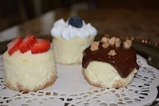 Bite size cheesecake with a graham cracker crust, topped with sour cream topping.